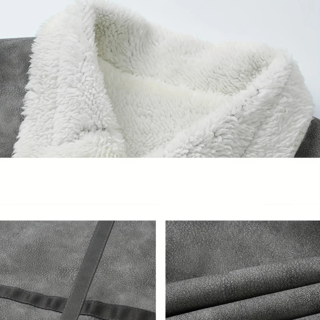 The soft suede-style outer finish delivers a clean and refined look, while the fully fleece-lined interior provides comfort and insulation throughout the day. The plush lining extends to the lapel collar, adding both warmth and a premium feel.